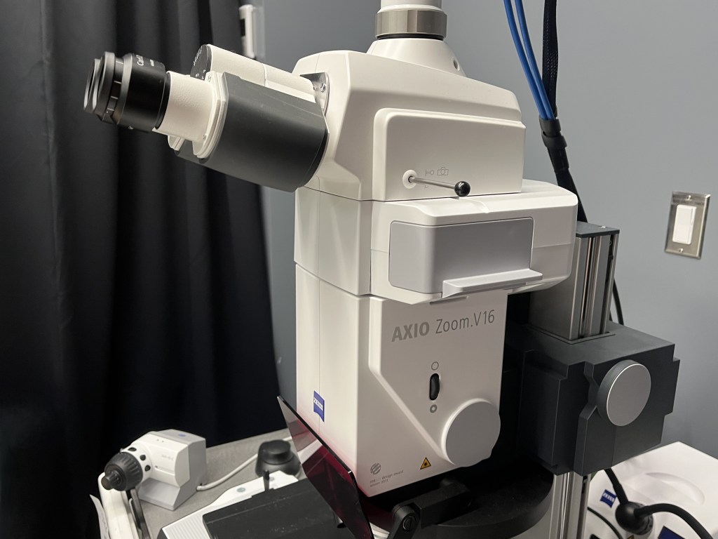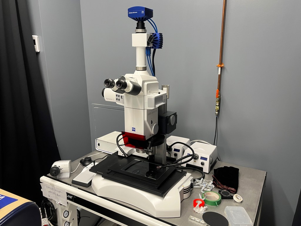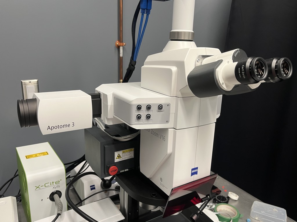 This fluorescence microscope is capable of imaging large samples. The Apotome 3 uses structured light to perform fluorescent sections to produce 3D datasets.